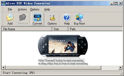 Alive PSP Video Converter is an all-in-one video converter to convert popular video to PSP MP4 format. It supports converting DivX, XviD, MPEG, MOV, MPG, MOD, QickTime, MP4, 3GP, 3G2, SWF, GIF, DV, MJPEG, VOB, WMV, ASF, AVI to PSP or MP4 video format for Sony PSP. Alive PSP Video Converter also allows you to convert various video to AVI, DivX, XviD, or MPEG formats. On the other hand, you can convert your favorite video to MP3 audio that can be played on your Sony PSP.